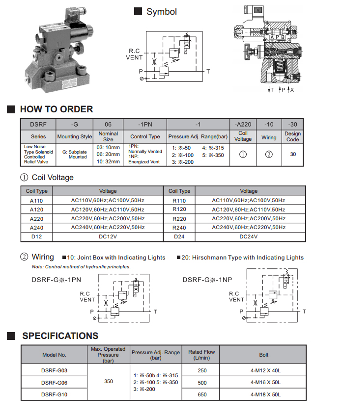 DSRF Une soupape de décharge à solénoïde à faible bruit, une vanne à haute pression à haute pression à faible bruit, est une combinaison de vannes de décharge et d'électrovanne, utilisant des signaux électriques pour décharger ou pressuriser la pompe. Il dispose d'une large gamme de régulations de pression, d'une petite déviation de la régulation de pression, de petites vibrations de pression, d'une action sensible, d'une capacité de surcharge énorme, de faible bruit.