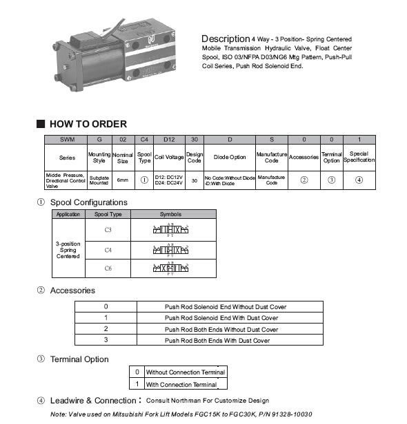La soupape de commande hydraulique SWM-G02 est largement utilisée dans les chariots élévateurs, la machine de construction, la machine d'exploitation minière, les véhicules de construction et la machine agricole. Ce type de vanne directionnelle solénoïde est spécialement développé pour la boîte de vitesses.