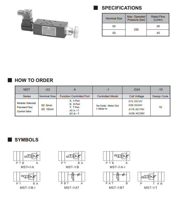 Paramètres deSolénoïde modulaireOpVanne de contrôle de débit