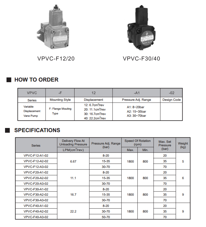 Série VPVC La pompe à alésage à déplacement variable peut ajuster et compenser automatiquement le débit sous la pression de consigne, qui se caractérise par une faible consommation d'énergie, une faible chaleur, un assemblage facile, un fonctionnement doux et à faible bruit. Il est utilisé pour le moteur à entraînement direct, en particulier les exigences d'utilisation satisfaisantes de la machine-outil et de l'intérieur.