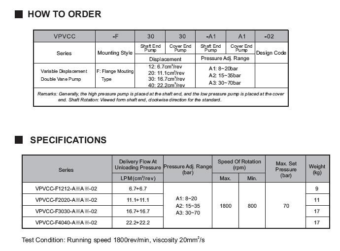 Série VPVCC La pompe à double pale à déplacement variable est composée de deux pompes à palettes variables, qui peuvent produire deux sources d'huile avec des pressions différentes. L'huile s'écoule en utilisant un seul moteur pour réduire l'espace de montage.